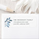 Projetado para coordenar com nossa coleção de feriados Naturally Joyful, as etiquetas de endereço de retorno apresentam um primo de folhas de cor azul-víbora e folhagem com minúsculas amoras brancas. Personalize com seu endereço de retorno em letra chic off-black.