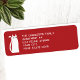 Um gato branco festivo sobre fundo vermelho para amantes de os animais. Arte original de Nic Squirrell. Altere o nome e o endereço a serem personalizados.