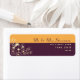 Um novo, elegante, tom de joia amarelo e roxo de ameixa, etiqueta de volta do casamento, com rendas florais douradas e caligrafia moderna.