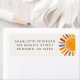 Este endereço de retorno de chá de fraldas com tema solar é decorado com um sol colorido. Facilmente personalizável. Original Watercolor © Michele Davies.