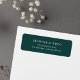 Etiquetas de endereço de retorno de cor sólida elegantes em verde-caçador rico exibem seus detalhes de endereço de retorno em bloco branco clássico e letra itálico.