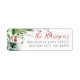 Etiqueta de endereço de Natal com folhagem em aquarela festiva em letra cursiva e tipografia moderna.