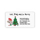 Etiqueta de endereço de piquete de Natal giro com Papais noeis jogando picleball em fundo branco. Coma, beba e seja feliz