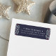 Projetado para corresponder à nossa coleção de cartões de férias Folk Art Wreath, estas etiquetas de endereço de retorno ricamente coloridas apresentam os seus detalhes de endereço de retorno em marfim definido contra um fundo azul noturno profundo, com sotaques inspirados na arte popular em ambas as extremidades em marfim correspondente, vermelho de cranberry e verde-espiru.