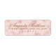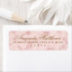 Etiquetas de endereço de retorno elegantes com seu nome em uma fonte de script de caligrafia romântica com o endereço abaixo em um fundo de mármore rosa pincelado