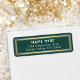 Adicione um toque elegante de acabamento aos envelopes com etiquetas de endereço na moda verde, dourado e branco de retorno. O texto neste modelo é simples de personalizar. Design apresenta tipografia moderna quic e um clássico ouro e borda branca. Observe que o ouro é impresso a cor, não a folha metálica.