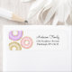 Esfregue as mamães para convidar os entes queridos para um chá de fraldas. Correspondendo aos nossos convites para bebês de rosquinha, essas etiquetas de endereço de devolução salvam o incômodo de endereçar seus envelopes manualmente. Apresentando rosquinhas borrifadas cor-de-rosa e roxas. Preencha o texto usando a caixa "Personalizar" no lado direito do item ou clique no link azul "Clique para personalizar mais" para organizar o texto, alterar as fontes e cores e também adicionar informações ou imagens adicionais a este design.