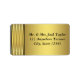 Douradas faixas com etiquetas de endereços preto e dourado na borda da faixa preta.