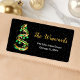 Esta elegante e chic address label apresenta uma árvore de Natal de fita verde e dourada com baubles. O texto combina o script manuscrito e as fontes sans serif modernas para um aspecto elegante e sofisticado. A neve caindo, os flocos de neve e faíscas dão um toque festivo e mágico. Isto é perfeito para o Natal e para o feriado.