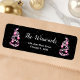 Esta elegante e chic return address label apresenta uma árvore de Natal de fita rosa e preta com baubles. O texto combina o script manuscrito e as fontes sans serif modernas para um aspecto elegante e sofisticado. A neve caindo, os flocos de neve e faíscas dão um toque festivo e mágico. Isto é perfeito para o Natal e para o feriado.