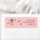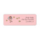 Uma menina de elva com calçados balés joga algumas estrelas ao redor. Doce etiqueta de endereço.