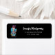 Etiquetas de endereço com uma ilustração de um esqueleto humorístico. Vestindo um chapéu, segurando uma bebida. Ele tem um grande sorriso no rosto. Bonita e assustadora diversão para o Halloween.