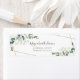 Esta elegante etiqueta de endereço de retorno com a sua cor d'água, folhas de eucalipto, faz parte de uma suíte de casamento coordenada.