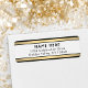 Adicione um toque elegante de acabamento aos envelopes com etiquetas de endereço na moda preto, dourado e branco de retorno. O texto neste modelo é simples de personalizar. Design apresenta tipografia moderna quic e folha de ouro falsa clássica e listras horizontais brancas. Observe que o ouro é impresso a cor, não a folha metálica.