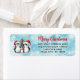 Crie etiquetas únicas de endereço azul e vermelho Feliz Natal com uma ilustração bonita da família dos pinguins perto de uma árvore de Natal. O modelo facilita a digitação do seu endereço.