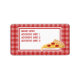 Um desenho animado bonito de uma fatia gordurosa de pizza com três pedaços de salame e um monte de queijo em cima dele em um padrão de xadrez vermelha e branca.