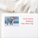 Feliz feriado de uma forma fofa com este querido de vitelo ou boi na neve. Vestindo um Chapéu Santa. Etiqueta de endereço de devolução de excelente para cartões de Natal.