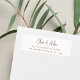 Essas etiquetas de endereço de retorno simples e elegantes são projetadas para corresponder aos nossos convites de casamento de Script Manuscrito Moderno. Uma bela design baseada na tipografia, com uma sensação minimalista, com uma escrita manuscrita de terracotta moderna e uma letra serif clássica.