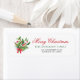 Etiquetas de endereço de volta de Natal felizes com buquê de Natal, texto personalizado, trabalho de arte de cor d'água, cores verdes vermelhas.