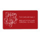 Adicione alegria festiva aos seus presentes de férias e mensagens de correio com esta etiqueta vermelha brilhante de endereço de retorno que inclui a frase lúdica "Feliz e Brilho" em um roteiro branco e caprichoso. A cor arrojada e o design com letras manuais trazem um toque alegre aos cartões de Natal, pacotes ou convites para festas. Personalize com seu nome e endereço para fazer com que cada envelope sinta feliz a partir do momento em que chega.