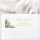 Esta etiqueta do endereço de volta de Natal de na moda é decorada com folhagem de água e bagas em vermelho, verde e ouro. Diz Feliz Natal na tipografia elegante da escrita. Facilmente personalizável. Porque nós criamos a nossa trabalho de arte, você não encontrará esta imagem exata de outros designers. Original Watercolor © Michele Davies.