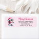Estas etiquetas de endereço de volta de Natal cor-de-rosa personalizadas apresentam o "Feliz Natal" dizendo em letra de script e um bonito patinador de gelo de pinguim em roupa cor-de-rosa. O modelo facilita a digitação do seu endereço.