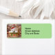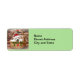 Maltês Cuppies no cesto festivo de férias, etiquetas de endereço de ida e volta concebidas por medida.