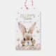 Etiqueta de Páscoa personalizada com um belo coelho da Páscoa e borboletas com delicado estilo pintado à mão a aquarela. Etiqueta de presente de Natal. O texto inferior é personalizável. Perfeito para um jogo de caçadores de ovos.