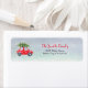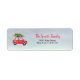 Apresentando um carro vermelho em uma paisagem de inverno de neve com cor d'água. Personalize com seu nome e endereço. Estes fazem legendas bonitas de devolução para o feriado de Natal.