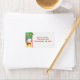 Esta etiqueta de endereço de Natal de praia mostra Papais noeis na praia de pé com uma palmeira decorada com luzes de férias.