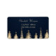 Pinheiros de ouro legantes sobre fundo azul. Um design elegante e sofisticado. Personalize com o seu nome e endereço.