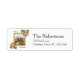 Adicione um toque de fim festivo ao seu correio de férias com esta etiqueta de endereço de retorno personalizada. Projetado com florais vermelhos, dourados e verdes de aquarela e personalizado com seu nome e endereço da família. Coordena-se perfeitamente com a coleção de feriados de Feliz e Bright.