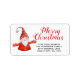 Essas etiquetas de endereço de retorno do Xmas personalizadas pela na moda com o Feliz Natal dizendo que apresentam um gnomo bonito em roupa vermelho em um fundo branco e um texto de modelo para personalizar com seu endereço.