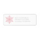 Este design apresenta um floco de neve cor-de-rosa pastel sobre um fundo branco. Seu nome e endereço são exibidos à direita em branco