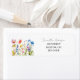 Este rótulo de endereço de devolução personalizado apresenta delicadas flores silvestres em aquarela em tons suaves de rosa, azul, amarelo e roxo ao longo da parte inferior, combinado com um nome em escrita elegante na superfície branca limpa. Bela e prática, é perfeita para a escola ou escritório.