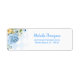 Rótulo de endereço de devolução Floral Dourado Azul. Design tem flores azuis-chic. Faz um rótulo de excelente para a coleção de chás de fraldas do teacup.