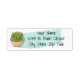 Essas etiquetas de endereço de retorno têm um design de Flair Floral Sudoeste que apresenta um conjunto de três plantas suculentas, na frente, com uma abertura verde suave de cor. A caixa de texto pode ser personalizada com suas informações.