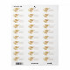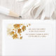 Estas etiquetas de casamento apresentam flores 3D douradas em um fundo branco.