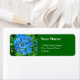 Etiqueta flores azuis de verão e suas folhas verdes