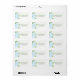 Flores brancas e delicadas, azuis, com folhas sobre fundo branco. Modelo de etiqueta personalizável