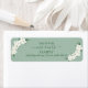 Etiqueta Flores Brancas Quadro Verde Sage Dourado Padrão de