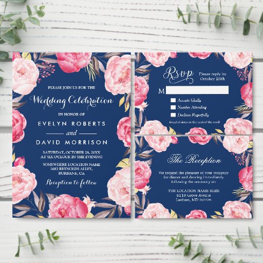 Invitation Suite: Botanical Floral Navy BlueCriado por Scott C.