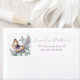 Flores lilás românticas de verão e borboletas devolvem etiquetas de endereço para belas letras.