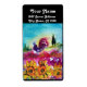 Paisagem colorida da Toscana com campos de flores e galo preto em cores amarela, fuchsia vermelha, verde, roxo, azul. Pintura acrílica na canvas.Legal, design artístico para festas de férias de Verão, reuniões familiares, aniversário, festas de aniversário ou qualquer evento que você queira!