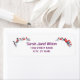 Rótulo de endereço de retorno personalizado de na moda para uma pessoa (pode ser personalizado também para uma família), com uma ilustração de motivo floral em volta das bordas esquerda e direita, incluindo um belo pássaro no lado esquerdo, e com um roteiro manuscrito elegante e contemporâneo para o nome da pessoa ou nome da família e uma fonte moderna de todos os bonés para o endereço.