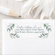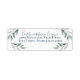 Linda marca botânica verde aquarela e etiqueta de endereço de retorno de texto de script manual. Vinhas verdes delicadamente à volta do endereço e misturas verdes de senso macio com o texto azul do cadete e fontes de script manual.