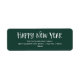 Essas coloridas etiquetas de endereço de retorno dizem "Feliz ano novo" em um fundo verde da floresta, com tipografia branca moderna e caprichosa.