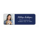 Adicione o toque final aos seus convites de graduação, anúncios de graduação envelopes, envios e papel de carta com estas etiquetas de endereço de devolução de fotos de formando personalizadas. Personalize essas etiquetas de endereço de foto com sua foto, nome e endereço de formando favoritos. Essas simples etiquetas de endereço de retorno de fotos são modernas, elegantes e modernas. COPYRIGHT © 2020 Judy Burrows, Black Dog Art - Todos Os Direitos Reservados. Etiqueta de Endereço de Regresso para Graduação Azul do Marinho de Foto do formando