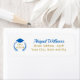Etiquetas de endereço de retorno para seus anúncios de formatura e cartões de agradecimento com logotipo de cor personalizada em azul. Apresenta imagem de um boné de graduação azul e louro com ano de turma editável e seu endereço. Vermelho, preto e outras cores escolares também disponíveis neste mesmo design.