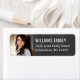 O design personalizado do rótulo de endereço apresenta uma foto de formatura do graduado com texto de endereço de devolução branco moderno e fundo com uma aparência texturizada de quadro negro preto rústico.